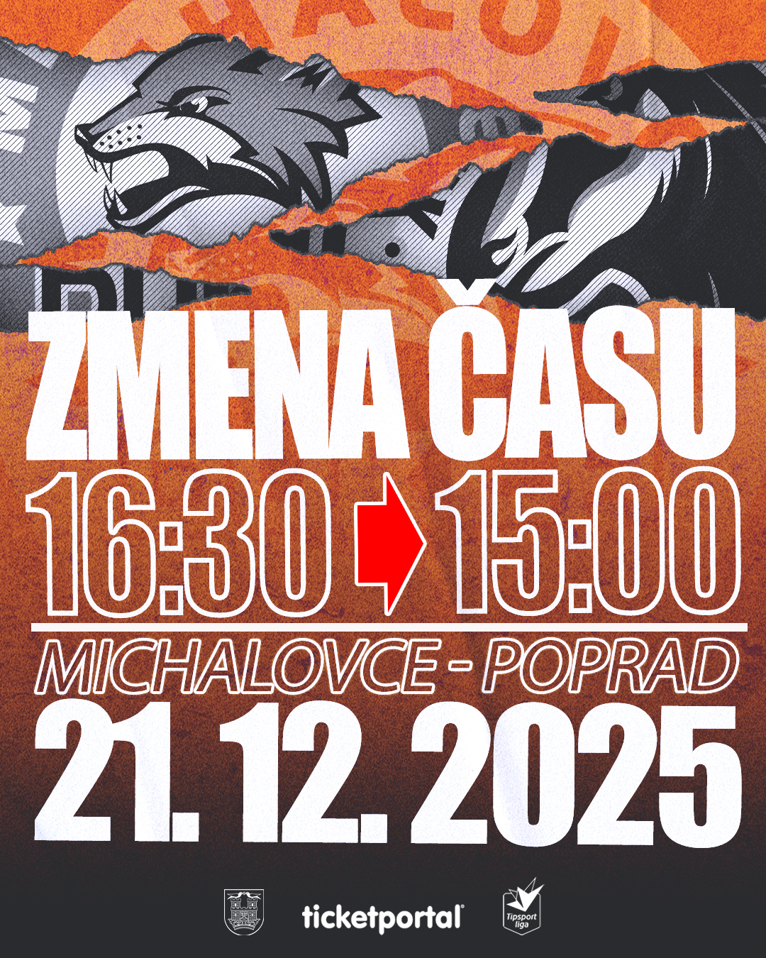Zápas, ktorý sa mal konať v nedeľu 21. 12. o 16:30, sa odohrá v zmenenom čase o 15:00!